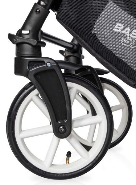 Przednie koła są skrętne z możliwością blokady na wprost. Oznacza to, że Riko Basic Sport jest zwinny i łatwo nim manewrować. Pompowane koła wózka osadzone są na łożyskach, dzięki czemu kręcą się gładko i płynnie.