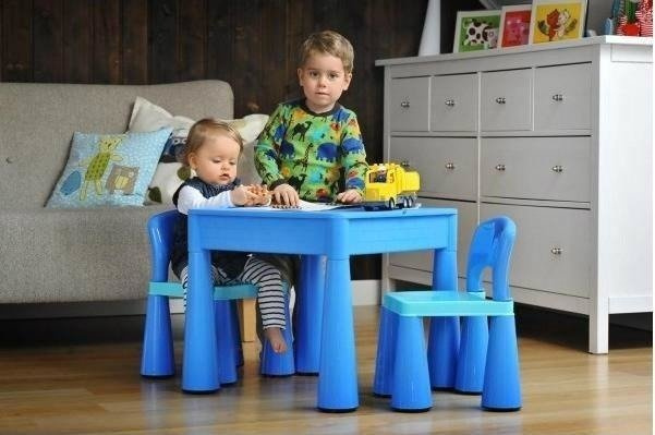 - pod blatem znajduje się pojemnik o wysokości 8 cm; można w nim schować niezbędne zabawki, kredki, kartki,