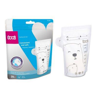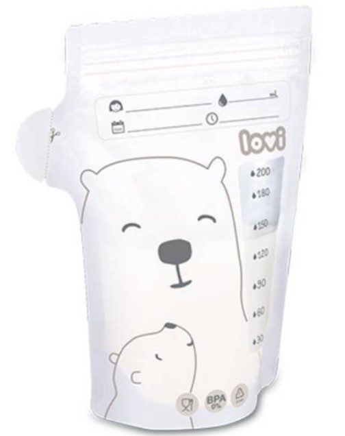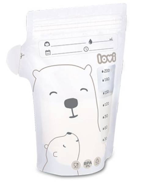 Torebka do przechowywania pokarmu Lovi pozwoli ci przetrwać nawał oraz zrobić zapas jedzonka dla maluszka. Torebki są sterylne i szczelnie zamykane, dzięki czemu masz pewność, że przechowywany pokarm będzie pełnowartościowy. Z boku torebki znajduje się dzióbek, który pozwoli wygodnie i bez chlapania przelać pokarm. Na torebce znajduje się miejsce na notatki, a na przezroczystym okienku umieszczono skalę w mililitrach. Koniecznie zwróć także uwagę na urocze misie obok podziałki.