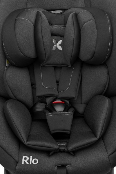 Pasy bezpieczeństwa fotelika RIO posiadają miękkie osłonki na ramiona, dzięki czemu nie uwierają i nie ograniczają ruchów przypiętego malca. Jednocześnie pas mniej się nagrzewa, co wprost przekłada się na komfort podróżowania maluszka.