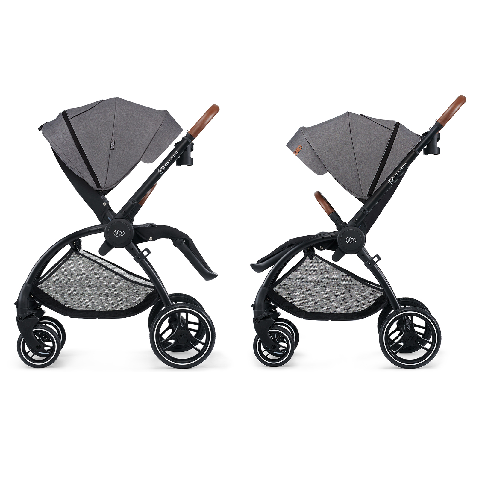 Jeśli już od jakiegoś czasu szukasz wózka dla swojej pociechy, wiesz zapewne, jak istotna jest możliwość odwrócenia siedziska przodem lub tyłem do opiekuna. Kinderkraft Evolution posiada tę funkcje. W zależności od preferencji dziecka i swoich możesz w kilka sekund przestawić siedzisko. Specjaliści polecają najpierw wyjąć dziecko z siedziska.