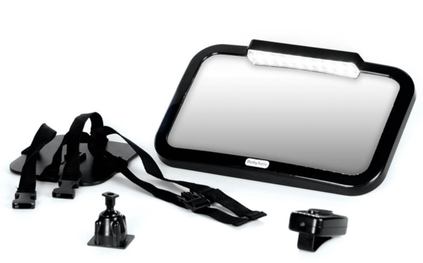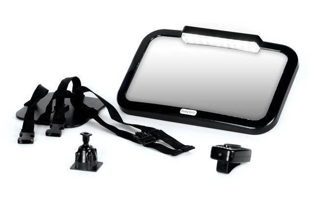 BabySafe podświetlane lusterko sterowane pilotem umożliwia ci kontakt wzrokowy z dzieckiem, które podróżuje tyłem do kierunku jazdy. Pasuje do każdego samochodu dzięki uniwersalnym paskom montażowym. Wystarczy przypiąć je klamrami do zagłówka tylnego fotelika, wyregulować paski i gotowe. Duża powierzchnia (15 cm x 26 cm) wraz z płynną regulacją ustawienia zapewniają duże pole widzenia.