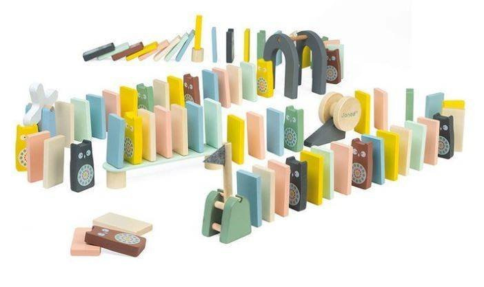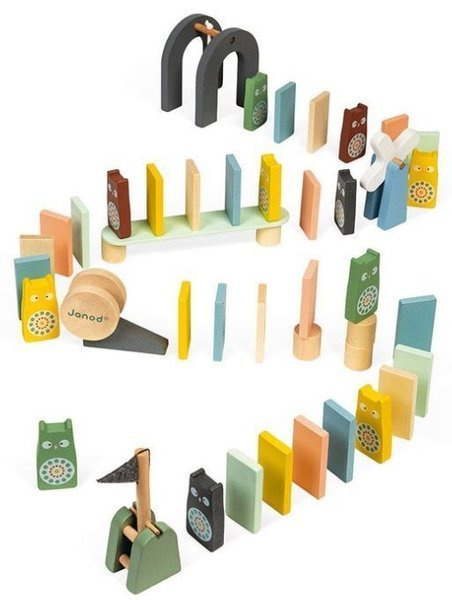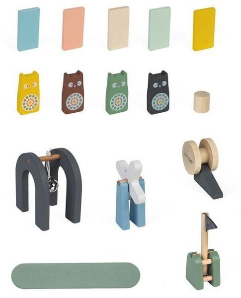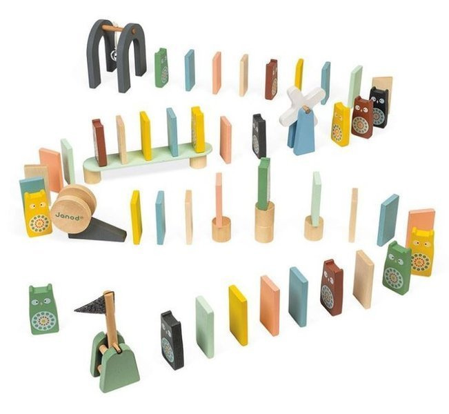 Zestaw zawiera 100 elementów, o różnych unikalnych kształtach, takich jak wiatraczek, sowy, chorągiewki i wiele, wiele innych! Rozwijająca się kreatywność dziecka sprawi, że zabawa z Janod domino będzie wiązało się z niekończącą się frajdą. I założę się, że sprawi radość nie tylko najmłodszym członkom rodziny!