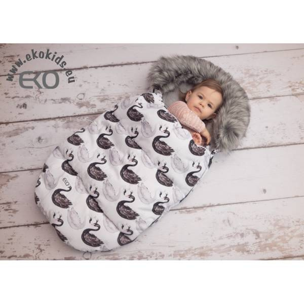 Podszewka wykonana jest z ,,misie'', który doskonale zatrzymuje ciepło wewnątrz śpiwora. Śpiworek ma wymiary 45 x 85 cm, a uniwersalny system otworów na pasy bezpieczeństwa sprawia, że śpiworek pasuje do wielu spacerówek i gondoli.