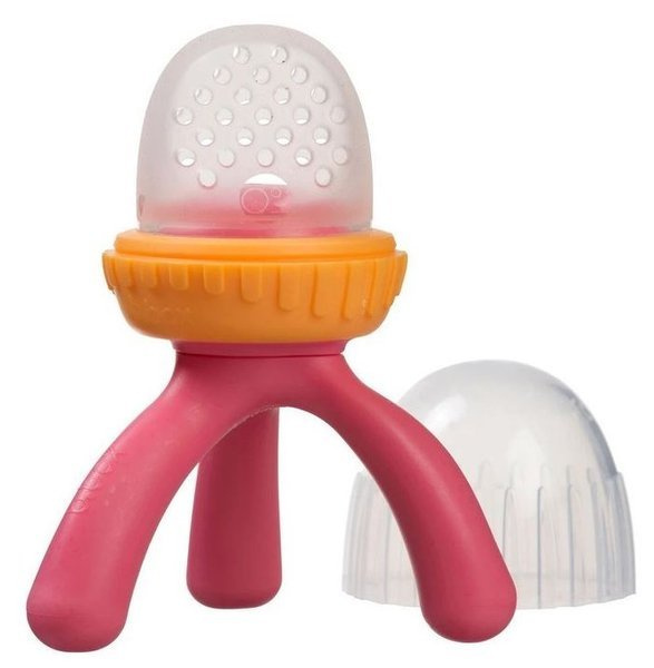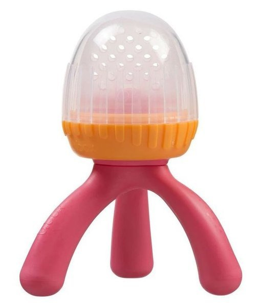 Szkrab może trzymać za jeden z trzech uchwytów, które pełnią jednocześnie rolę nóżek. Gryzak pozwoli ci w łatwy sposób zapoznawać swoje maleństwo z nowymi smakami, a od tego tylko pół kroku do rozszerzania diety.