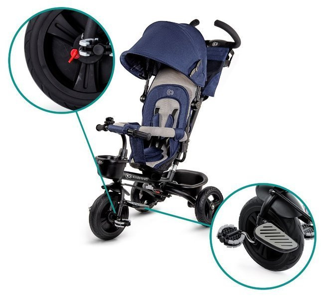 Dostępny w BabyHit.pl trójkołowy rowerek Kinderkraft Aveo to praktyczny, wygodny i wytrzymały model przeznaczony dla dzieci w wieku od 9 miesięcy do 5 lat. Sprzęt wyróżnia się solidną, a przy tym lekką konstrukcją. Do jego produkcji wykorzystano trwałe materiały, takie jak stal (konstrukcja rowerka), guma (kółka) oraz poliester (poszycie). Model został wyposażony w mocne, odporne na przebicia koła z dwoma niezależnymi hamulcami. W rowerku zainstalowano 3-punktowe pasy z miękkim wypełnieniem oraz barierką. Zapewniają one komfort i bezpieczeństwo dziecku.