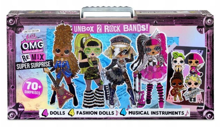 L.O.L to słodkie laleczki, które są znane wszystkim dzieciom! Ich oryginalny wygląd i styl zachwycają każdego! Tym razem lalki zaprezentowane zostały w rockowym wydaniu! Zabawa rozpoczyna się już przy odpakowywaniu nowoczesnego booboxa. W booboxie znajduje się ponad 70 niespodzianek! Najważniejsze w środku są 4 lalki, które mają wspaniałe, rockowe stroje! Każda lalka ma inny kolor włosów i fryzurę. Ich ubrania są oryginalne i kolorowe, a buty przyciągają uwagę! Laleczki L.O.L mają swoje instrumenty i gadżety. Ponadto, instrumenty wydają dźwięki! Z pomocą instrumentów, możesz stworzyć swój własny, zremixowany koncert! Dodatkowo każda z rockowych lalek ma siostrzyczkę. Siostrzyczki towarzyszą im na każdym koncercie, a ich styl jest bardzo podobny!