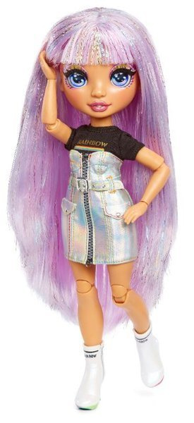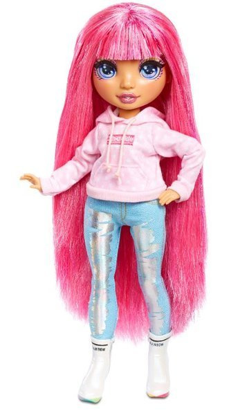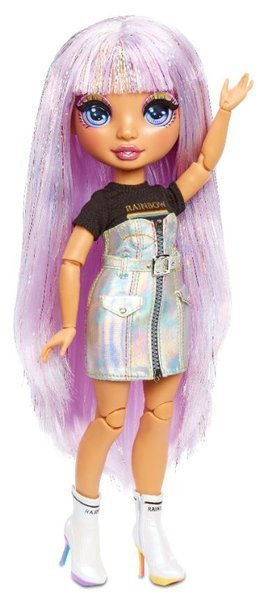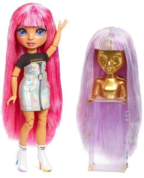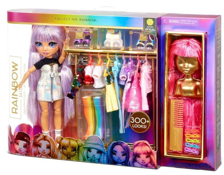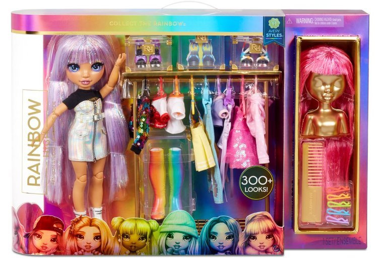 LOL Surprise Rainbow High Fashion Studio Kolorowa Szkoła Mody to wspaniałe miejsce, pełne kolorów i zabawy! Laleczka Avery Styles to wyjątkowa lalka. Ma w sobie szyk i elegancję, a także niesamowite wyczucie stylu. W swojej pięknej garderobie skrywa mnóstwo kolorowych, kreacji. Lalka na piękne długie fioletowe włosy. Dodatkowo znajdziesz taką samą perukę, tylko w kolorze różowym (będzie ona świetnie pasować do różowej kurteczki). Lalka Avery Styles ma słabość do butów. Wysokie buty są podstawą garderoby! Ma sandałki, szpilki oraz kozaczki. W zestawie znajduje się również grzebyk i kolorowe spineczki, które pomogą Ci w stylizacji włosów lalki.