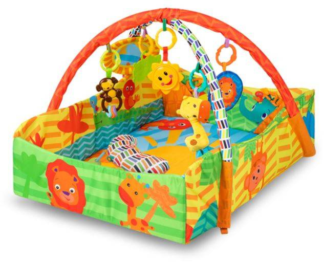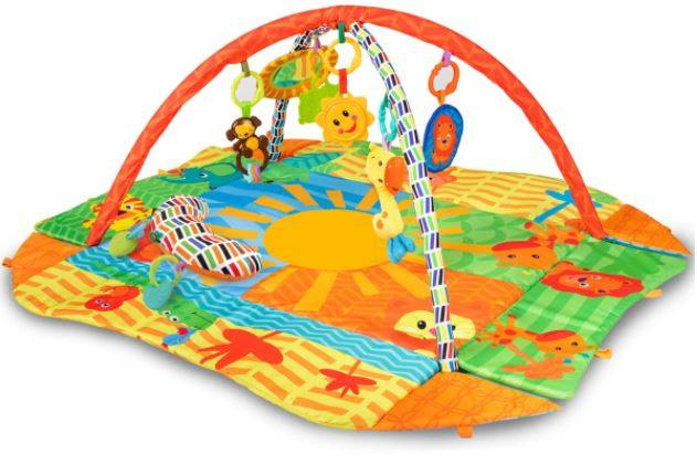 Matę Congo zaprojektowano w taki sposób, by wspomagała rozwój maluszka. Kolory pobudzają wzrok dziecka, szeleszczące i grzechoczące oddziałują na słuch dziecka. Sięgając po zabawki, maleństwo ćwiczy z kolei swoje mięśnie i motorykę.