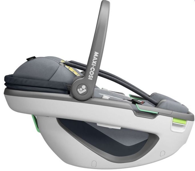 Żeby wyjąć nosidełko z korpusu, wystarczy nacisnąć dwa przyciski zwalniające, umieszczone z dwóch stron fotelika, poniżej nóżek malucha. Gotowe, można wysiadać. Po powrocie, o tym, czy nosidełko zostało właściwie wpięte, poinformują duże wskaźniki; jeśli zmieniły kolor na zielony, możecie jechać bez obaw.