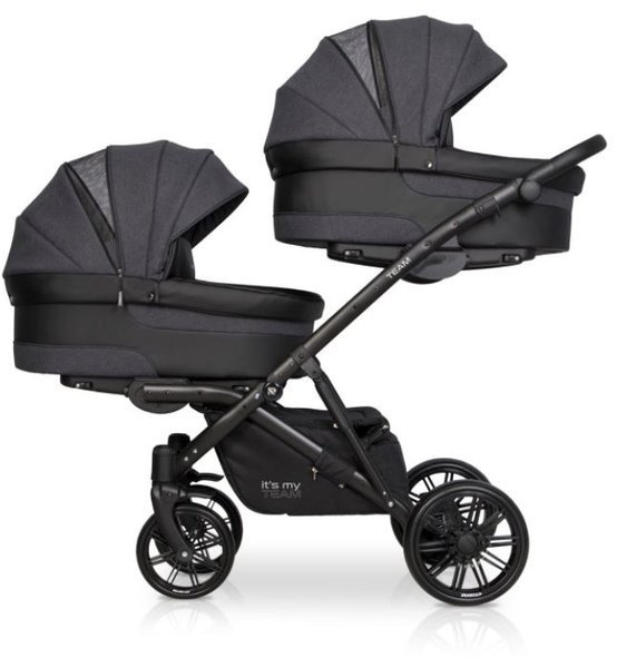 Riko team wózek bliźniaczy głęboko spacerowy sprawdzi się zarówno u tych rodziców, którzy ,,trafili dwójkę'' jak i u tych, których pociechy przyszły na świat rok po roku. W zestawie znajdziesz wszystko, co będzie ci potrzebne, żeby wyjść z domu z dwójką swoich pociech.