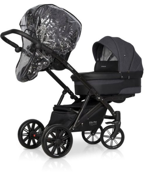 Jeśli masz wózek bliźniaczy Riko Team, nie musisz obawiać się deszczu ani śniegu - zestaw zawiera folie zarówno na siedziska, jak i gondole, dzięki czemu twoje pociechy nie zmokną, nawet gdy zaskoczy was mżawka. Folię i moskitiery możesz zabrać ze sobą w koszu pod wózkiem, jeśli pogoda za oknem jest niepewna.