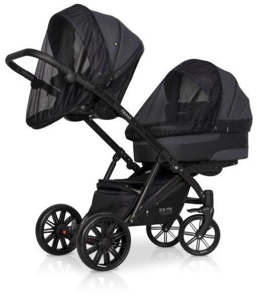 Riko team wózek bliźniaczy głęboko spacerowy sprawdzi się zarówno u tych rodziców, którzy ,,trafili dwójkę'' jak i u tych, których pociechy przyszły na świat rok po roku. W zestawie znajdziesz wszystko, co będzie ci potrzebne, żeby wyjść z domu z dwójką swoich pociech.
