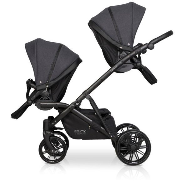 Ramę wózka możesz złożyć, co ułatwi ci przechowywanie oraz transport. Jeśli dużo jeździsz z maluszkami, weź pod uwagę uzupełnienie swojego wózka bliźniaczego Riko Team o foteliki 0+ - dzięki temu w podróż możesz zabrać jedynie ramę, a maluszki przełożyć na wózek razem z fotelikami.