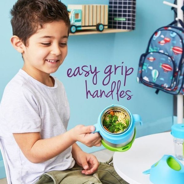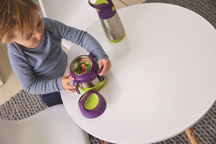 • do termosu dołączono silikonowy bezpieczny widelczyk, który mocowany jest do silikonowej podstawy (kompaktowy zestaw, który łatwo zabrać ze sobą tam, gdzie będzie potrzebny);