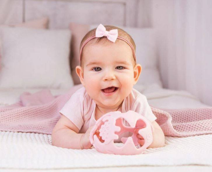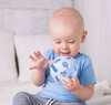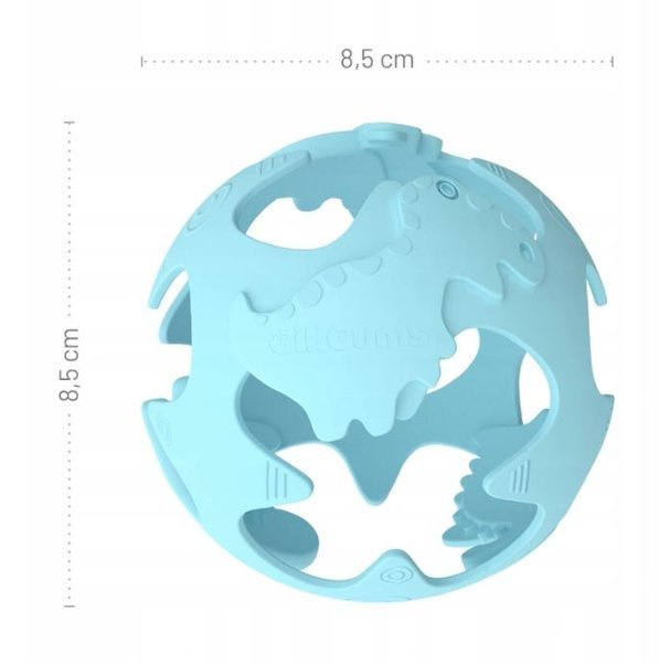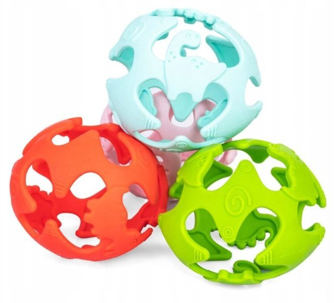 Mięciutka piłeczka, ozdobiona dinozaurami, zachwyci każdego malucha! Wykonana z bezpiecznego silikonu jest odporna na zgniatanie, a znajdujące się w niej otwory ułatwią małym rączkom chwytanie zabawki. Wypustki o różnych kształtach przyniosą ulgę obolałym dziąsłom ząbkującego dziecka. Piłeczka dostępna jest w kilku kolorach.