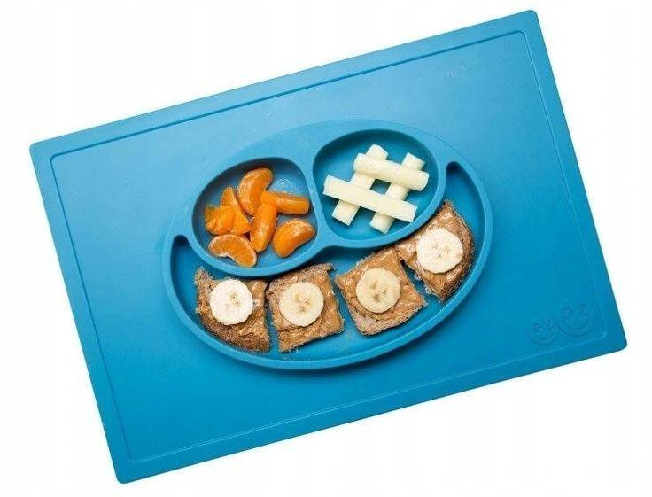 Innowacyjna silikonowa podkładka mocno przywiera do stołu czy innej gładkiej powierzchni, na której ją położysz, dzięki czemu małe dziecko nie będzie w stanie jej przesunąć czy zrzucić. Trójdzielny talerz pozwala podzielić posiłek na porcje, co ułatwi malcowi naukę samodzielnego jedzenia, a z czasem także – rozpoznawanie kategorii pokarmów. Dodatkowo, zaprojektowany podział ułatwi rodzicowi podanie posiłku złożonego z odpowiedniej ilości warzyw i innych ważnych składników żywieniowych. Radosny wygląd – dwie mniejsze przegródki przypominają kształtem oczy, a większa uśmiech – sprawia, że domowe posiłki będę maluchom pozytywnie się kojarzyć. Nadaje się do serwowania zarówno zimnych, jak i ciepłych potraw.