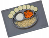 Innowacyjna silikonowa podkładka mocno przywiera do stołu czy innej gładkiej powierzchni, na której ją położysz, dzięki czemu małe dziecko nie będzie w stanie jej przesunąć czy zrzucić. Trójdzielny talerz pozwala podzielić posiłek na porcje, co ułatwi malcowi naukę samodzielnego jedzenia, a z czasem także – rozpoznawanie kategorii pokarmów. Dodatkowo, zaprojektowany podział ułatwi rodzicowi podanie posiłku złożonego z odpowiedniej ilości warzyw i innych ważnych składników żywieniowych. Radosny wygląd – dwie mniejsze przegródki przypominają kształtem oczy, a większa uśmiech – sprawia, że domowe posiłki będę maluchom pozytywnie się kojarzyć. Nadaje się do serwowania zarówno zimnych, jak i ciepłych potraw.