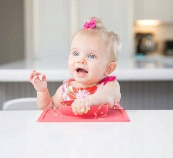 Innowacyjna silikonowa podkładka mocno przywiera do stołu czy innej gładkiej powierzchni, na której ją położysz, dzięki czemu małe dziecko (prawie na pewno) nie będzie w stanie jej przesunąć czy zrzucić.