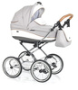 Wózek głęboko-spacerowy Roan Emma wyraźnie nawiązuje do wózków retro. Chociaż jednak swoim wyglądem konstrukcja przywołuje dawne dni, to jednak rozwiązania i materiały użyte do stworzenia wózka są jak najbardziej współczesne.
