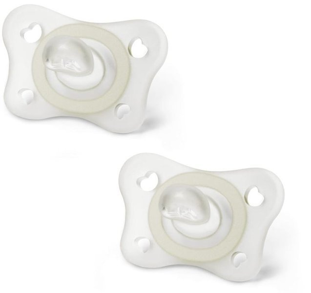 Miękki smoczek stworzony z jednego kawałka silikonu. Bardzo dobrze dopasowuje się do twarzy dziecka i nie powoduje odgnieceń na skórze. Wcięcie na bródkę i nosek, zapewnia na tyle dużo miejsca, by nie utrudniać oddychania.
