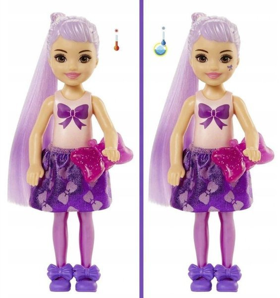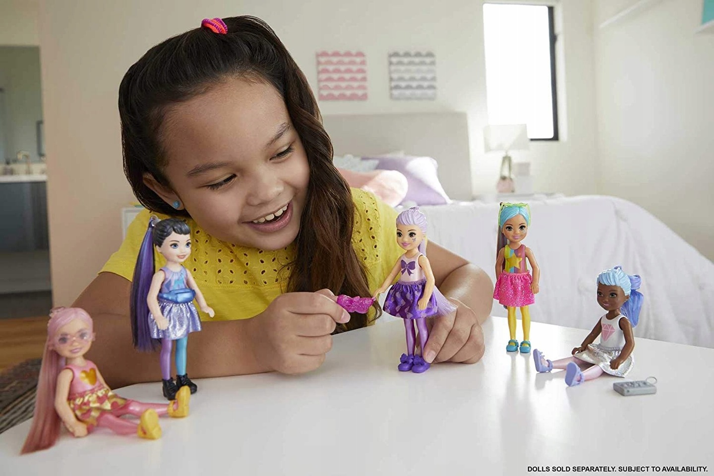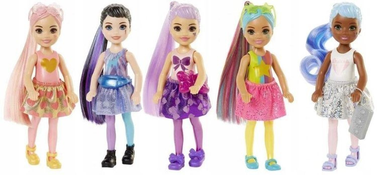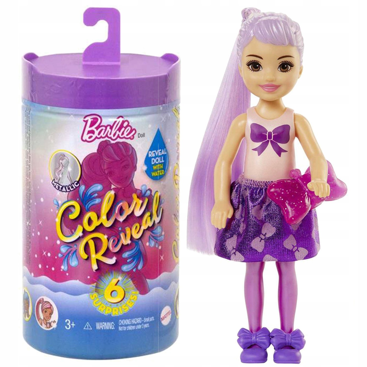 Zestawy z lalką Barbie® Color Reveal™ Brokatowa Chelsea™ zawierają aż sześć niespodzianek! W każdym z nich jest urocza lalka Chelsea™ w modnym ubranku, ale jej wygląd pozostaje na razie tajemnicą.