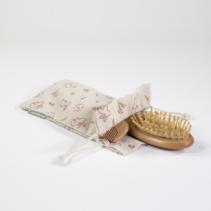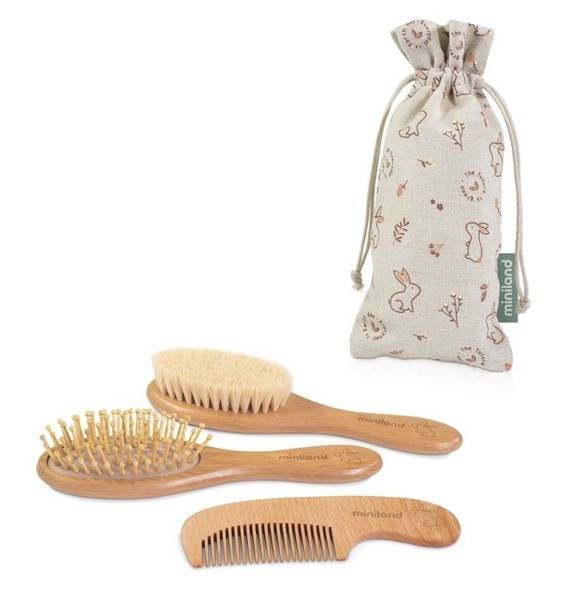 Zestaw szczotek i grzebienia został wykonany w 100% z naturalnego drewna i innych elementów, które delikatnie dbają o Twoje dziecko. Są antystatyczne, nie łamią włosów, a ponadto szanują środowisko.