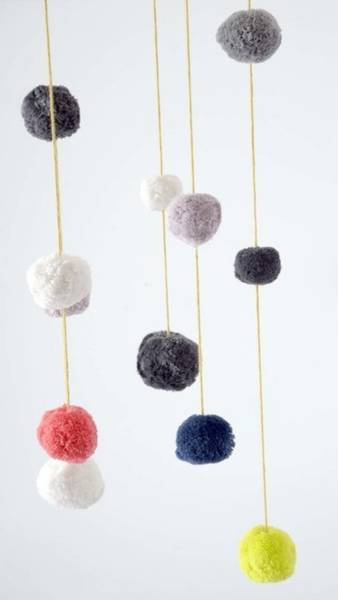 Dekoracja, która doskonale dopełni aranżację dziecięcego pokoju wprowadzając do niego nieco dynamiki. Poruszane podmuchem powietrza lub delikatnie trącone pompony drgają, bujają się, wirują przyciągając wzrok. Nie tylko wzbogacają przestrzeń ale także pomagają w wyciszeniu. Ułatwiają skupienie, koncentrację, pozwalają wyciszyć emocje. Warto przyglądać się im z wygodnego fotela lub kanapy i zrelaksować się a nawet zasnąć.