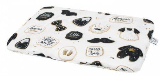 Płaska poduszeczka dla najmłodszych, wykonana jest z wysokogatunkowej bawełny 100%, którą z drugiej strony uzupełnia mięciutki plusz minky. Środek poduszki wypełniony jest antyalergiczną włókniną wysokopuszystą silikonową.