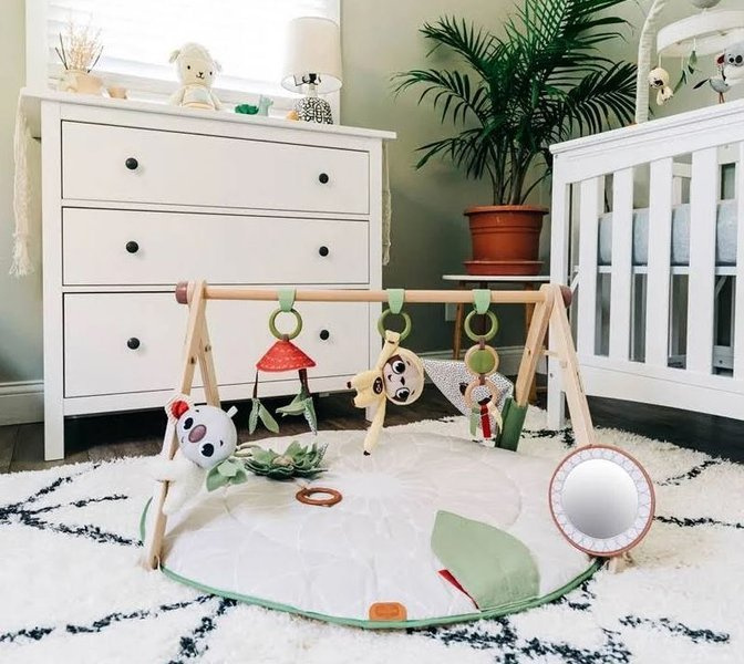 Wspierająca wszystkie umiejętności rozwojowe dziecka, ta zabawna i modna mata edukacyjna dla niemowląt obejmuje 20 kreatywnych zajęć. Podwójnie wyściełana, miękka mata edukacyjna z zabawkami, wykonana z wysokiej jakości materiałów, połączona z drewnianym stojakiem, z możliwością odpięcia i wyposażonym w urocze zawieszki. Modny design kolekcji Boho Chic i wyjątkowa paleta kolorów uzupełnią wnętrze Twojego domu i tworzą spokojne otoczenie, które sprzyja eksploracji świata przez Twojego maluszka. W zestawie z matą znajdziesz karty z miesiącami, które możesz wykorzystać do tworzenia pięknych pamiątek ze zdjęć.