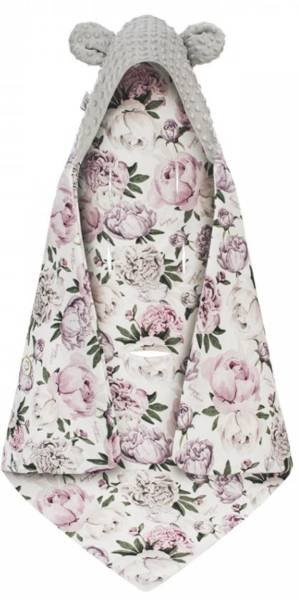 Kapturek wykonany jest z mięciutkiego pluszu minky, który doskonale chroni przed wiatrem. Środek kocyka wypełniony jest antyalergiczną włókniną wysokopuszystą silikonową. Zapewnia ona dziecku ciepło oraz wygodę podczas użytkowania.