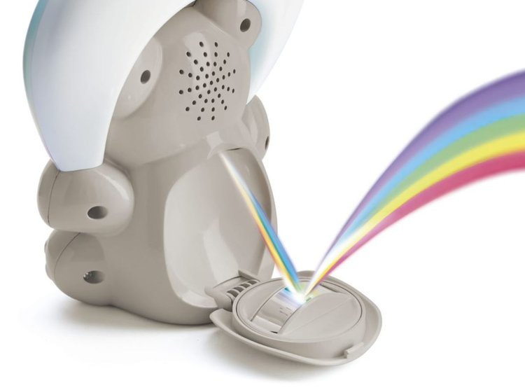 Zabawka posiada obrotowe lusterko, które pozwala na projekcję tęczy w dowolnym wybranym przez nas miejscu.
