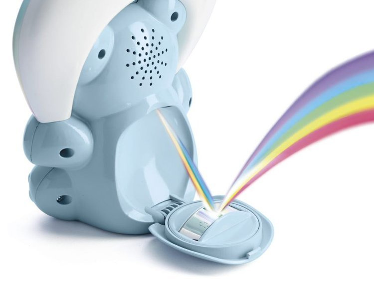 Zabawka posiada obrotowe lusterko, które pozwala na projekcję tęczy w dowolnym wybranym przez nas miejscu.