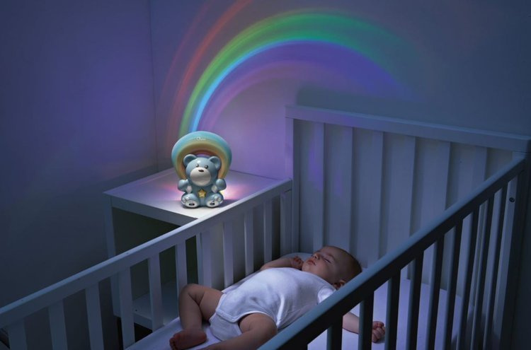 Miś z projektorem służy do stworzenia przyjaznych dla dziecka warunków do zaśnięcia. Dzięki załączonemu głośnikowi, z zabawki leci spokojna muzyka klasyczna, bądź New Age, a w tym samym czasie projektor delikatnie rozświetla pomieszczenie. Miś posiada wyłącznik czasowy (15 i 30 minut), dzięki czemu nie obudzi on dziecka w czasie lekkiego snu.