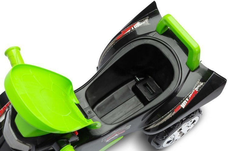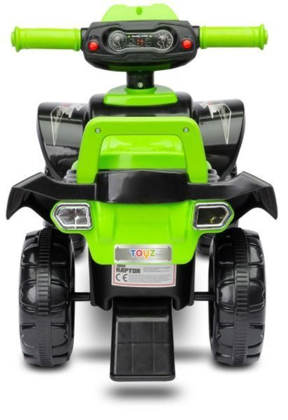 Quady są niezwykle lubiane przez starszych i młodszych. Dowodem jest m.in. popularność naszego akumulatorowego RAPTOR'a. Zanim maluszek na niego wsiądzie musi wcześniej opanować szereg umiejętności. Pomoże mu w tym miniRaptor. Jeździk wspiera naukę chodzenia, posiada szerokie siedzisko, gumowe rączki kierownicy oraz pojemny schowek na zabawki.