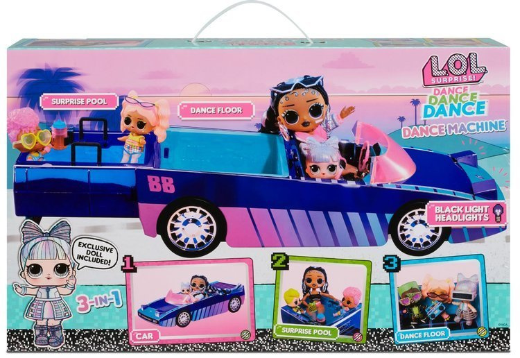 L.O.L. Surprise Dance Machine to niesamowity zestaw, który oczaruje każdego małego fana lalek LOL. Wyjątkowy samochodzik jest najmodniejszym pojazdem, jakikolwiek jeździł po mieście LOL! Poza swoją szybkością i niesamowitym wyglądem, autko ma wiele innych zalet. Samochodzik jest bardzo funkcjonalny. W mgnieniu oka, można zwinąć tył autka i ukaże się basen dla lalek LOL, do którego można nalać wody! W basenie jest wystarczająco miejsca, by pomieścić aż 3 laleczki. Autko zostało wyposażone w lampy, które świecą i się podnoszą. W zestawie oczywiście nie mogło zabraknąć ślicznej laleczki LOL, która oczarowuje wszystkich swoim niepowtarzalnym wyglądem. Zabawka jest świetnym pomysłem na prezent dla dzieci od 3 roku życia!