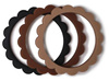 Mushie 3 Gryzaki Silikonowe Bransoletki FLOWER Black & Caramel & Natural
