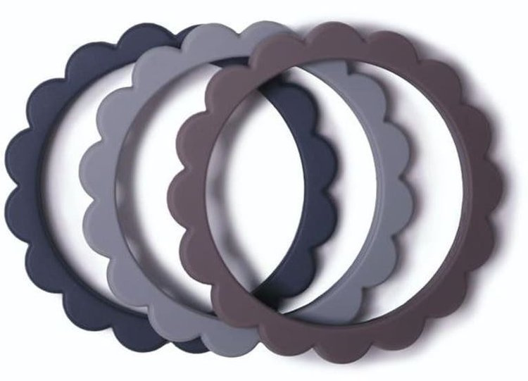 Mushie 3 Gryzaki Silikonowe Bransoletki FLOWER  Dove Gray & Steel & Stone