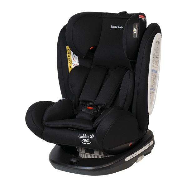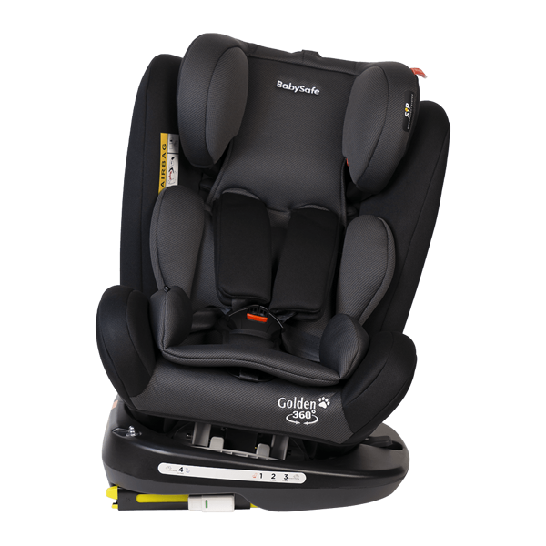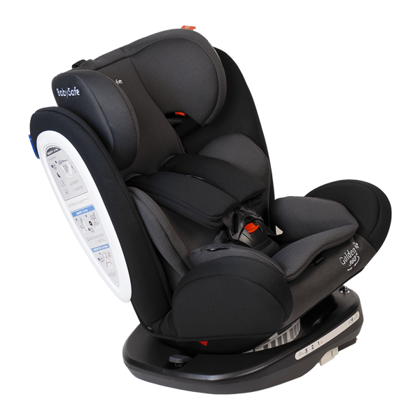 BabySafe Golden 360° to fotelik obrotowy z kategorii wagowej 0-36kg. W praktyce oznacza to, że jest to jedyny fotelik, jakiego będzie potrzebować Twoje dziecko w świetle europejskiego prawa. Siedzisko umieszczone jest na obrotowej bazie wpinanej złączami Isofix. Aby zmienić kierunek fotelika (przodem lub tyłem do kierunku jazdy) nie trzeba trudnić się demontażem i ponownym montażem, wystarczy obrócić siedzenie, a raz zamontowana baza pozostanie nieruchoma. Można w nim przewozić dzieci od urodzenia do osiągnięcia wagi 36 kg, czyli mniej więcej do 12 roku życia. Obrotowa baza ISOFIX gwarantuje stabilny montaż oraz bezpieczeństwo w przypadku kolizji. Tapicerka wykonana z wysokiej jakości oddychających materiałów absorbujących siły uderzeniowe. Bezpieczeństwo zostało potwierdzone przez instytut badawczy PIMOT.