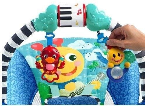Leżaczek Symfonia: - przeznaczony dla dzieci o maks. wadze 18 kg: w pierwszym okresie życia możliwość stosowania jako leżaczek (do 9 kg), po osiągnięciu sugerowanej wagi z łatwością zmienimy go w siedzisko dla starszych dzieci, - obrotowy pałąk z zabawkami posiada efekty dźwiękowe (wygrywa uspokajające dźwięki m,in Mozarta, Beethovena) - po pociągnięciu za jedną z wiszących zabawek uruchomimy obrotowe pianinko, - możliwość regulacji głośności, - regulacja oparcia, dzięki której dopasujemy leżaczek do potrzeb dziecka (2 poziomy) - demontowany pałąk z zabawkami, - 5-punktowe pasy dbają o bezpieczeństwo dziecka - kolorowe wzory przyciągają uwagę dziecka Zasilanie: 3 baterie C LR14 (brak w zestawie) Przeznaczenie: 3-18 kg
