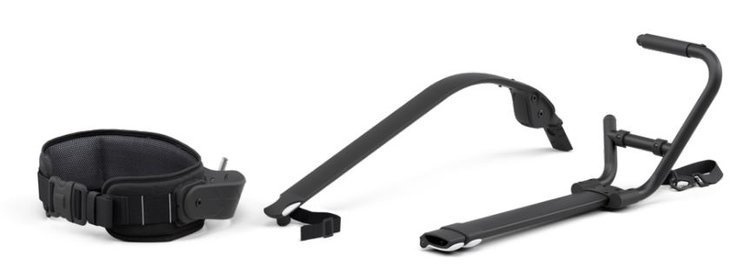 - w miejsce przedniego koła zamontować drążek holowniczy z pasem biodrowym, dzięki któremu będziesz mieć całkowicie wolne ręce podczas biegania z maluchem.*