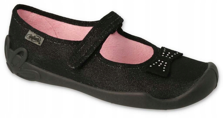 Kapcie dziecięce dziewczęce do przedszkola czarne rzepy Befado 114X240