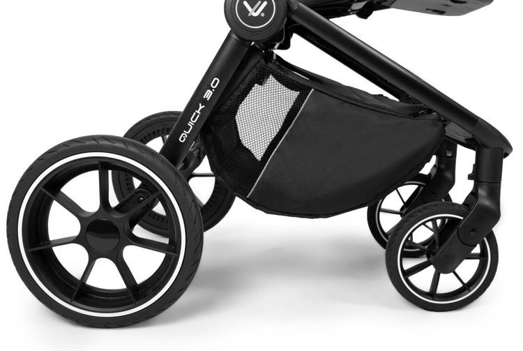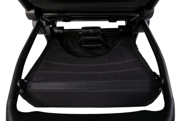 Pod wózkiem znajduje się ,,bagażnik'' czyli bardzo pojemny kosz na zakupy lub niezbędne drobiazgi jak miś czy książeczka. Dzięki klapie, zawartość jest zabezpieczona przed kurzem i ciekawskimi spojrzeniami.