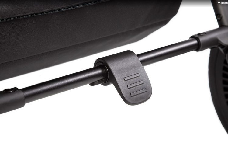 Pośrodku pałąka dla rodzica znajduje się przycisk, który umożliwia ci dostosowanie wysokości rączki do swojego wzrostu. Pozornie nieistotny szczegół ma tak naprawdę duże znaczenie, zwłaszcza gdy wybierzesz się ze szkrabem na dłuższą przechadzkę.