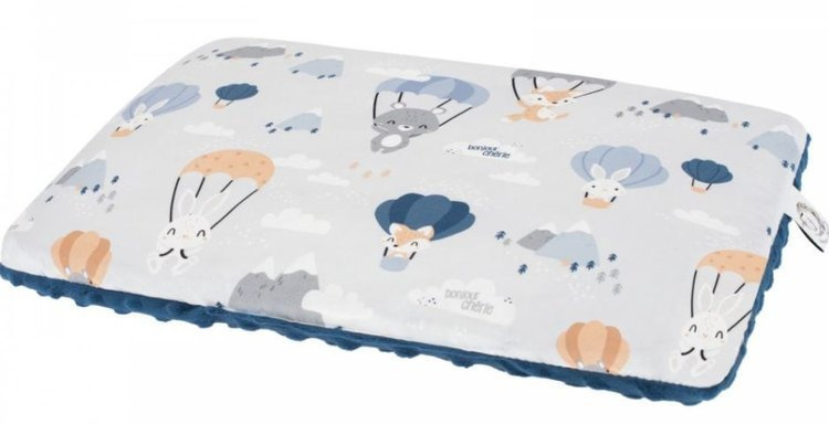 Płaska poduszeczka dla najmłodszych, wykonana jest z wysokogatunkowej bawełny 100%, którą z drugiej strony uzupełnia mięciutki plusz minky. Środek poduszki wypełniony jest antyalergiczną włókniną wysokopuszystą silikonową.