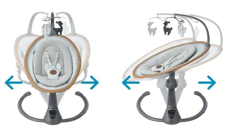 Siedzisko posiada regulację stopnia nachylenia, dzięki czemu bez trudu dopasujemy się do aktualnych potrzeb dziecka. Nie każdy malec lubi bujać się w taki sam sposób, dlatego producent przygotował pięć trybów huśtania, zarówno na boki, jak i do przodu i tyłu.