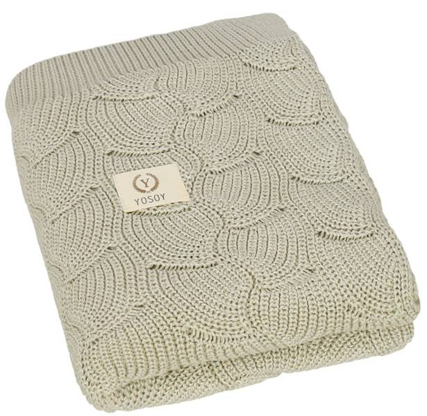 Mięciutki, ażurowy kocyk dziany marki YOSOY wykonany z ekologicznej przędzy bawełnianej, dzięki czemu jest w 100% bezpieczny dla delikatnej skóry niemowlaka.