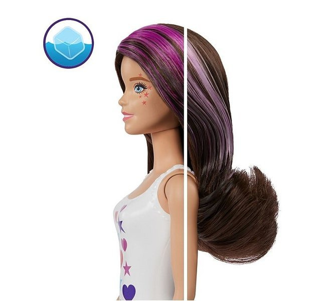 Barbie kolorowa niespodzianka to wyjątkowa lalka! Dlaczego wyjątkowa? Do końca nie wiesz, jak ona wygląda. Jest to po prostu niespodzianka! Otwieranie opakowania jest częścią zabawy – pociągnij za pasek, aby usunąć zewnętrzną warstwę i odsłonić przezroczystą tubkę. W środku znajduje się lalka o metalicznie złotym kolorze, która ma funkcję zmiany koloru.