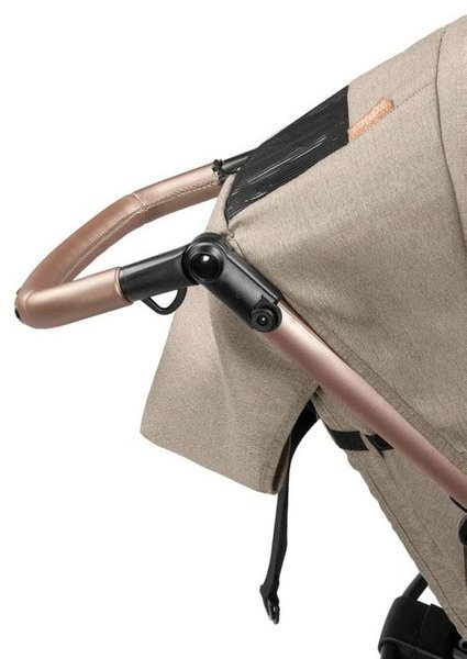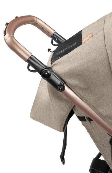 Pałąk wózka wykonany został ze skóry ekologicznej i posiada regulację, dzięki której można zastosować pozycję otwartą bądź półotwartą. Pełna rączka posiada specjalne wypustki, dzięki którym wózek po złożeniu stoi samodzielnie, chroniąc lakier przed otarciami.