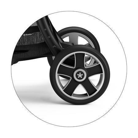 Ten wyjątkowy materiał gwarantuje trwałość spacerówki przez długie lata. Przednie koła Kiddy Evostar 1 są skrętne i możemy je zablokować do jazdy na wprost. Wygodne prowadzenie w każdych warunkach. Amortyzacja na wszystkie 4 koła i ergonomiczny stelaż gwarantują komfortową jazdę zarówno w mieście, jak i po trudniejszym terenie.